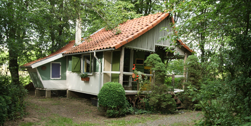 “Uit nood. Toen mijn vriend Rick en ik elkaar leerden kennen, woonde ik op 25 vierkante meter in Amsterdam. Ik werd ongepland zwanger en daarna nog een keer. We hadden een groter huis nodig, maar konden geen hypotheek krijgen. Rick had dit terrein al om er in vrijheid te kunnen schilderen en timmeren. We zouden er tijdelijk gaan wonen, maar zijn nooit meer weggegaan. Onze zoons Chevy en Tup zijn inmiddels zestien en veertien. Ze zitten op een Franse school en zijn compleet tweetalig.”