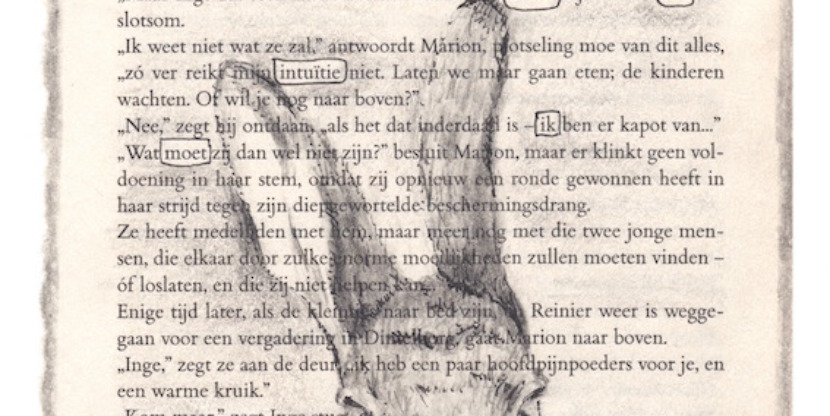 Een andere manier is om die woorden te omcirkelen. Ter inspiratie kun je kijken op Instagram onder de hashtag #blackoutpoetry of #stiftgedicht. Zo ontdekten we onder andere het mooie Instagram-account van Janine van Avendonk. Ze maakte ook stiftgedichten op pagina’s uit nummers van Flow.