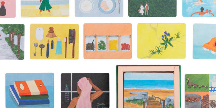 Leer een gedicht in een vreemde taal, teken een scène uit een droom die je als kind had, kook een maaltijd met een onbekend ingrediënt – en nog 47 geïllustreerde kaarten die je blik verruimen. Bedenker en maker is de Japanse illustrator en kunstenaar Shuku Nishi (@nishi_shuku), die naast tekeningen ook blokdrukken, driedimensionaal en olieverfschilderijen maakt.