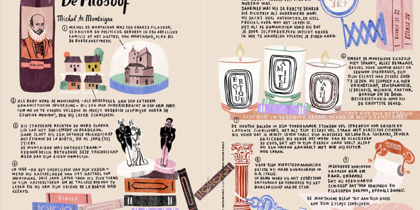In ieder nummer bespreken we de filosofie van een grote denker, aan de hand van een aantal illustraties. Deze keer is dat Michel de Montaigne (1533-1592).
