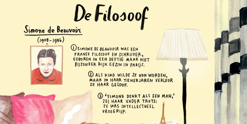 In ieder nummer bespreken we de filosofie van een grote denker, aan de hand van een aantal illustraties. In Flow 2 is dat Simone de Beauvoir (1908-1986).