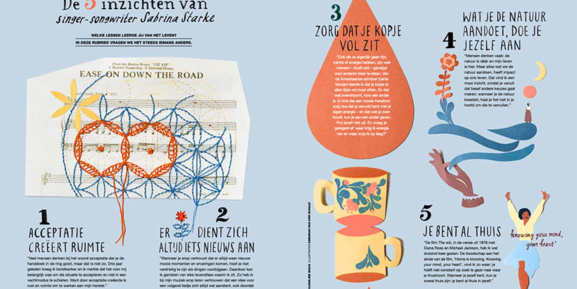 - Er dient zich altijd iets nieuws aan. “Wanneer je erop vertrouwt dat er altijd weer nieuwe mooie momenten en ervaringen komen, hoef je niet verdrietig te zijn als dingen voorbijgaan. Daardoor kan ik genieten van elke levensfase waarin ik zit. Zo heb ik bij mijn muziek erop leren vertrouwen dat een idee voor een volgend liedje zich altijd wel aandient, ook doordat ik voortborduur op eerdere ervaringen. Elke levensfase brengt weer nieuwe energie en ideeën.”