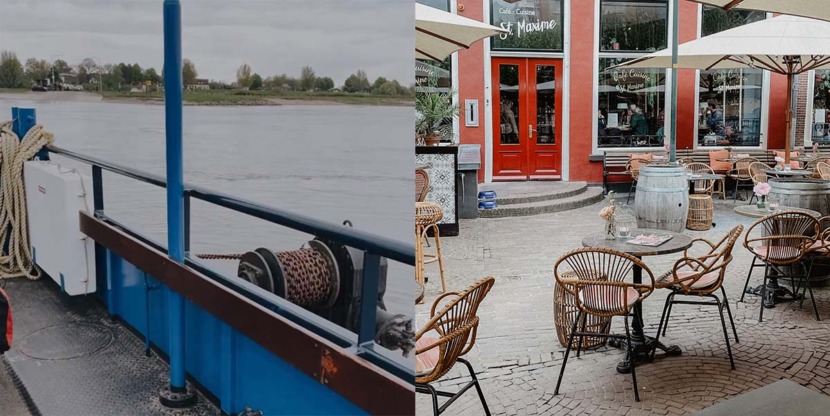 Het is een route die slingert door verschillende Gelderse en Overijsselse dorpen. Vind je het fijn om ergens een pauze te nemen? Er zijn genoeg gezellige restaurantjes op de route, wij aten een broodje en dronken een kopje koffie bij St. Maxime in Deventer, dicht bij het pontje en de IJssel.