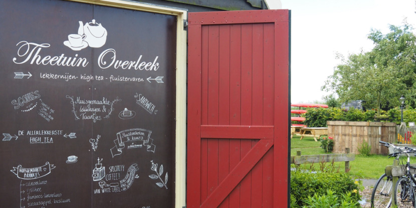 Het onthaasten begint zodra je bij Monnickendam de polders inrijdt. Volg de slingerende landweg langs sloten en weilanden met koeien en je komt aan bij Theetuin Overleek, een fijn adres aan het water. Je kunt kiezen voor een plek op de veranda of in het gras. Stoelen in verschillende kleuren staan verspreid op het erf waar ook kippen rondscharrelen.