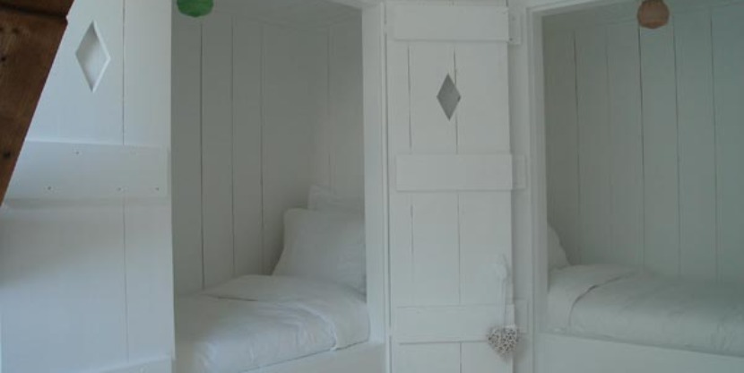 Zo’n fijn wit appartement met een aparte slaapkamer, badkamer en zitkamer. In de slaapkamer slaap je in een romantisch tweepersoonsbed, maar ben je met meer, dan zijn er ook drie bedsteden beschikbaar met schattige deurtjes. Leuk voor kinderen! De deurtjes kunnen dicht en er zitten lampjes in.