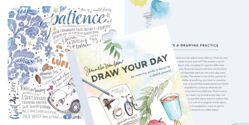 In haar boek Draw your day – An inspiring guide to keeping a sketch journal helpt Samantha je op weg met je eigen tekendagboek. En kijk, Flow is ook vertegenwoordigd in haar eigen versie: