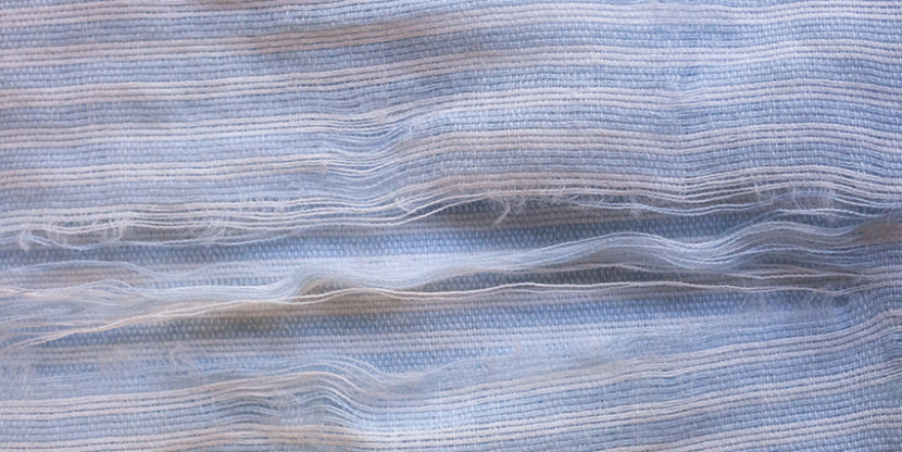 Joeri tekende al die verhalen op en samen met foto’s van de fris gewassen lakens en handdoeken maakte ze er een boekje van. De verhalen liggen symbolisch tussen foto’s van het wasgoed, dat her en der wat rafelrandjes heeft. En het witte garen van het ingebonden boekje past precies bij deze rafels van het versleten wasgoed.