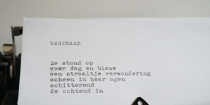 “Sinds een tijdje schrijf ik gedichten. Ik begon voorzichtig, probeerde wat uit. Maar toen ik een poëziewedstrijd won, werkte dat zo motiverend dat ik ermee verderging. Dichten maakt de weg vrij voor nieuwe dromen, nieuwe inspiratie. Ik typ mijn gedichten uit op een oude typemachine die nog bij mijn ouders op zolder stond. Daarna zet ik ze op Instagram.”