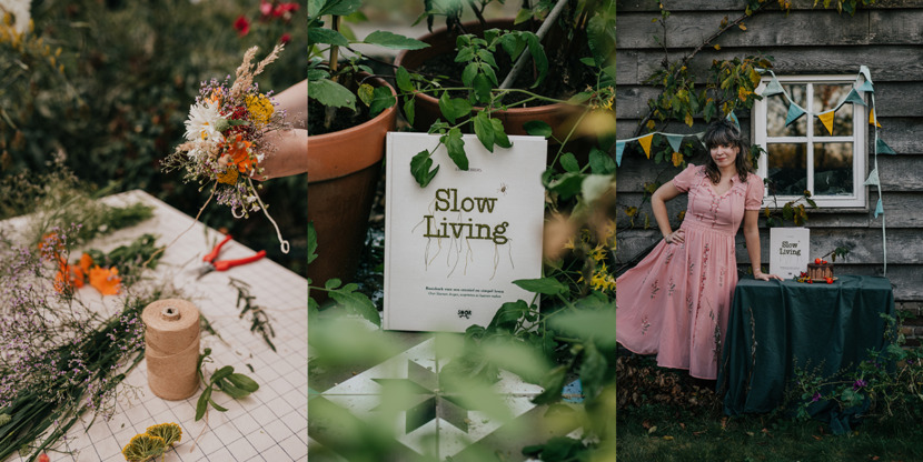 Ik heb bepaalde keuzes gemaakt waardoor het makkelijker voor me is om die slow living lifestyle te hanteren. We zijn verhuisd van de drukke stad naar het platteland, waar ik veel tijd doorbreng in de (moes)tuin en de natuur. Dat alleen al brengt je veel dichter bij de kern en de seizoenen. Er staat zo veel prachtigs in de tuin, en inmiddels leer ik steeds beter wat ik allemaal kan doen met die planten en bloemen die daar groeien.”