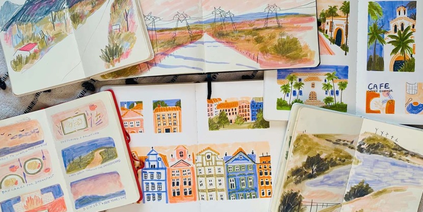 “Het heeft iets speciaals om mijn tekeningen en herinneringen op de bladzijden van een boek te hebben. Het is leuk om mijn reisverslagen na afloop van een reis door te bladeren en ze met andere mensen te delen. Ik grijp vaak terug naar de beelden in mijn schetsboeken om ideeën op te doen die later in schilderijen en illustraties worden omgezet. Reizen zijn zo inspirerend.