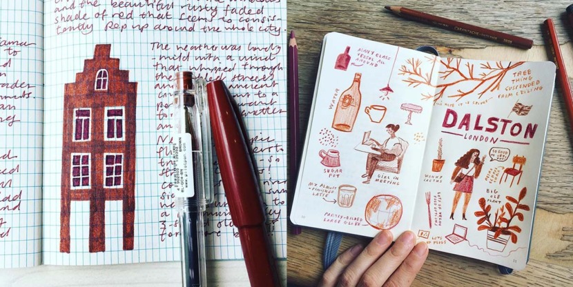 “Denk er niet te veel over na. Eerlijk gezegd, pak gewoon een pen en begin met schrijven. Beschrijf waar je zit, wat je kunt zien en waar je aan denkt. Je zult verbaasd zijn hoe natuurlijk en gemakkelijk het wordt naarmate je het vaker oefent. Als je het visueel aantrekkelijker wilt maken, probeer dan de pennen die je gebruikt af te wisselen en experimenteer met handschriftstijlen en paginatitels. Ik schrijf ook graag citaten, gedichten of songteksten op, die kunnen helpen om de stukken persoonlijke tekst te breken. Tekeningen en krabbels zijn ook leuk tussen de pagina’s. Onthoud: het is een persoonlijke plek voor jou, niet voor iemand anders. Dus verwijder elk oordeel.”