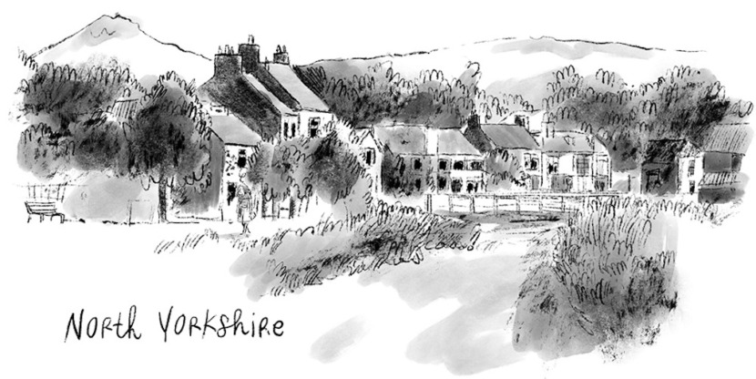 North Yorkshire wordt het. Nooit eerder geweest, maar dat deert niet. De cottage die we huren staat in een klein, typisch Engels dorpje met een bakkerij, postkantoor en vier pubs. Aan de rand van een groot natuurgebied en een kabbelend riviertje dat dwars door het dorp loopt. Ik maakte een tekening van het dorp, zodat ik het alvast een beetje leer kennen. Ook al is het maar voor een paar maanden, dit is precies wat ik nodig heb. Een verandering van omgeving om uit mijn vast gesleten routine te komen en om te resetten.