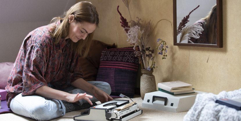 “Als kind kon ik zo diep nadenken dat ik mezelf in de wereld in mijn hoofd kon verliezen. Schrijven was de manier om de wirwar aan gedachten te verwerken. Ik heb mijn opa nooit gekend, maar laatst bladerde ik door een oud schrift vol gedichten van hem. Zo bijzonder. Negen jaar geleden kreeg ik ME (chronisch vermoeidheidssyndroom, red.) waardoor zowel het leven als mijn woorden een andere lading kregen. Voor de alternatieve therapie die ik volgde, moest ik twee keer per dag mediteren. Er ging een nieuwe wereld voor me open. Ik ontdekte een zelfbewustzijn dat ik daarvoor niet had. De diepte die ik hoop te bereiken in mijn gedichten en verhalen komt daaruit voort.”