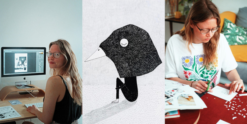 “Voor mij zijn die twee sterk met elkaar verbonden. Als ik schrijf, zie ik beelden – als ik teken, spelen er zinnen in mijn hoofd. Ik heb beide nodig om mijn gedachten uit te drukken. De ene keer doe ik dat met een tekening, dan weer met woorden. Zo maak ik voor een palliatief centrum kaartjes om na een overlijden naar nabestaanden te sturen als steun. Daarvoor onderzoek ik hoe ik een gevoelig onderwerp als rouw kan samenbrengen in tekst en beeld. De opdrachten waarbij die twee elementen samenkomen, vind ik het allerleukst.”