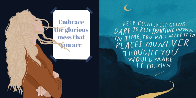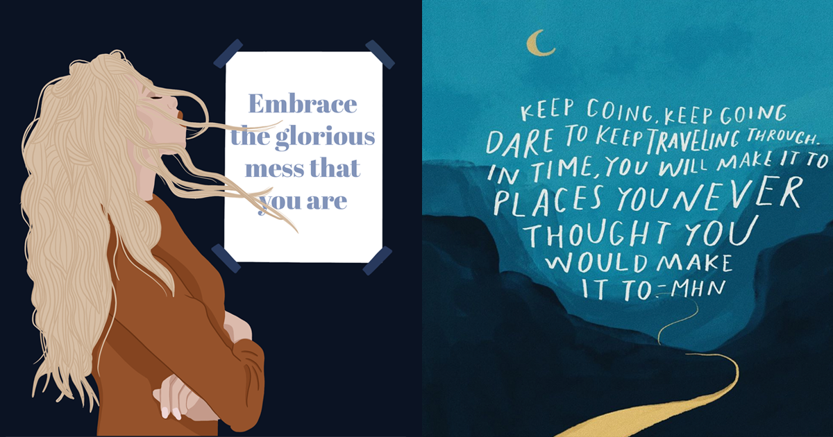 Bente van de Wouw plaatst regelmatig illustraties met daarin een quote verwerkt over zelfliefde, de kracht van vrouwen en eerlijkheid. Je hoeft niet iedere dag gelukkig te zijn, je bent niet op aarde alleen maar om gewicht te verliezen en het is helemaal niet erg als je het allemaal even niet meer weet, zijn boodschappen die ze met haar illustraties de wereld in gooit. “Iedereen worstelt (weleens) met het leven,” zegt ze. “We zien het alleen niet van elkaar doordat er, vooral online, maar weinig over gesproken wordt. Dat wil ik veranderen.”