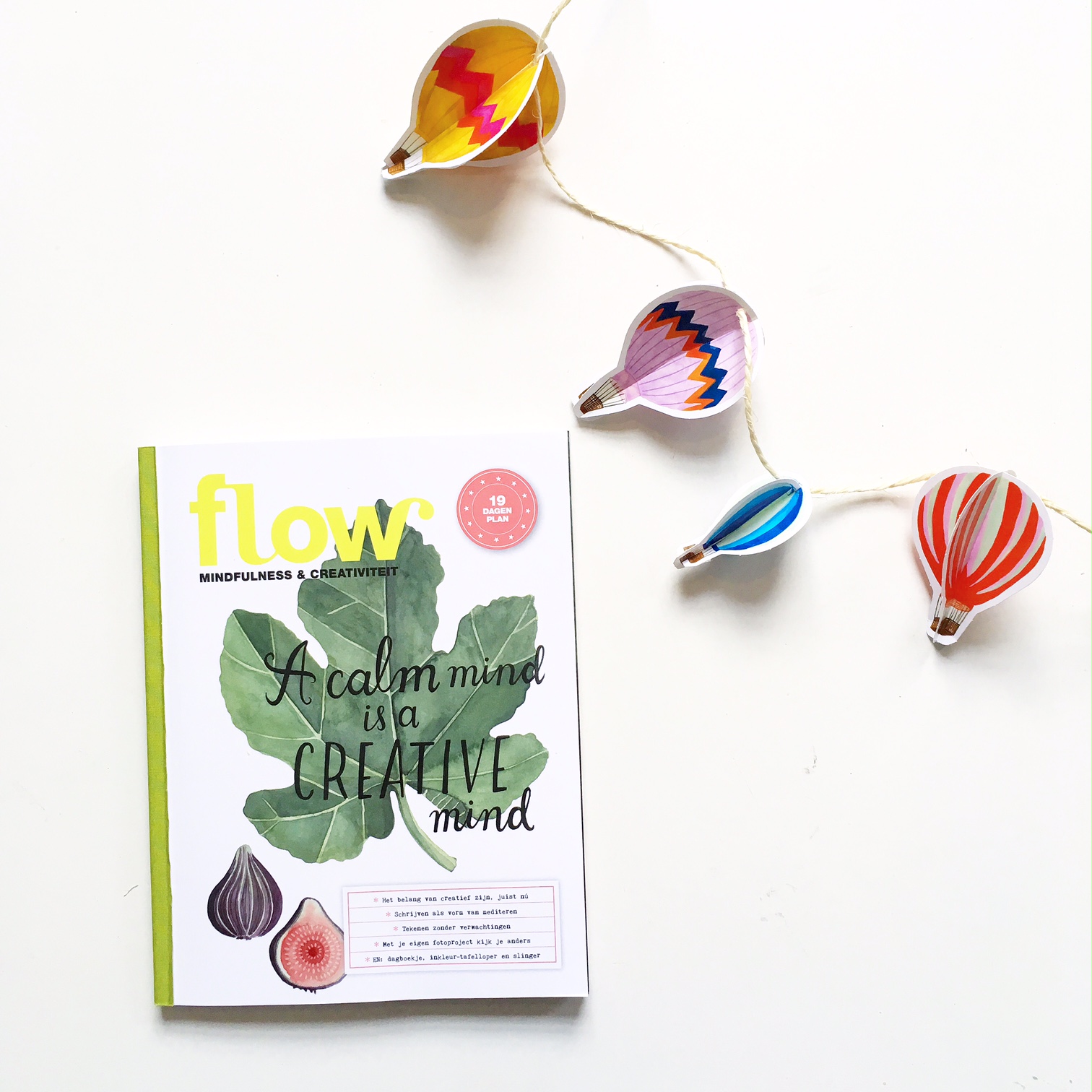 “Het zijn twaalf kleurige luchtballonnen. De illustraties heb ik eerder gemaakt voor Flow, bij een artikel over het enge van nieuwe dingen. Zelf ben ik namelijk doodsbang voor luchtballonnen. We hebben nu bedacht dat je er zelf een slinger van kunt maken. Ik zal zelf nooit in een luchtballon stappen, maar zijn ze niet mooi geworden?”