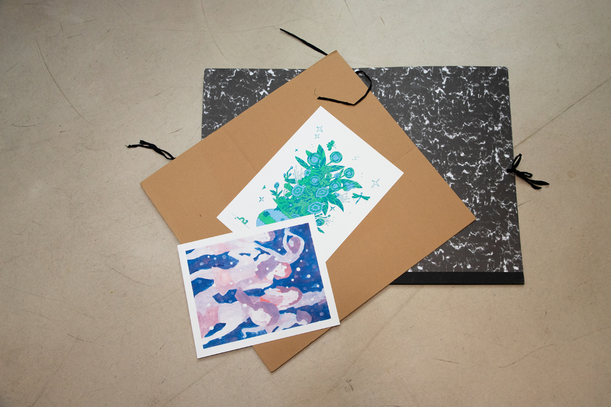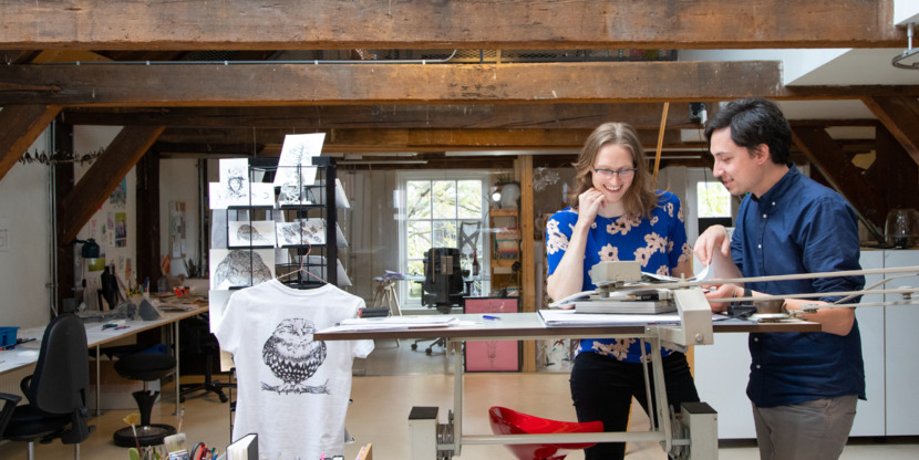 “We pakken de laatste dozen uit en richten onze nieuwe studio in: Het Huis van Betekenis, een community van tekenaars en creatieven in Utrecht. Thomas en ik zijn allebei grafisch ontwerper en verliefd op risoprint: een stencildruktechniek waar de mooiste, intense kleuren uit komen. Deze techniek is in de jaren tachtig van de vorige eeuw uitgevonden in Japan. Nu hebben we eindelijk een plek waar we ook stencilworkshops kunnen geven.”