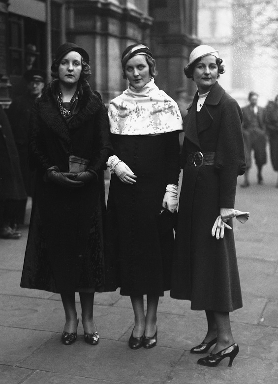 Three of the Mitford sisters as guests at the wedding of Lord Stanley of Aldernay and Lady Audrey Talbot in 1932. English Nazi sympathizer Unity Mitford (l) with her sisters, novelist Nancy Mitford (r) and Diana Mitford (c). (Photo by © Hulton-Deutsch Collection/CORBIS/Corbis via Getty Images)
