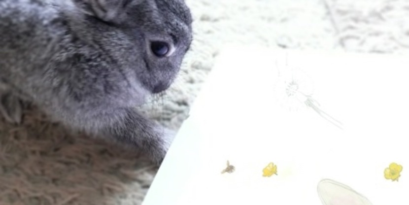 Annemoon werkt in veel stijlen. In de illustraties voor Flow combineert ze vaak fijne (potlood)tekeningen met echte bloemen, veertjes en papieren vondsten: een stukje natuurencyclopedie of een boekbladzijde. De poster van het knagend konijn maakte ze ooit voor een artikel in Flow. “Ik wilde eigenlijk samen met een van mijn konijnen op de foto, maar ze vinden het niet leuk om opgepakt te worden. Gelukkig vinden ze aaien wel leuk.”