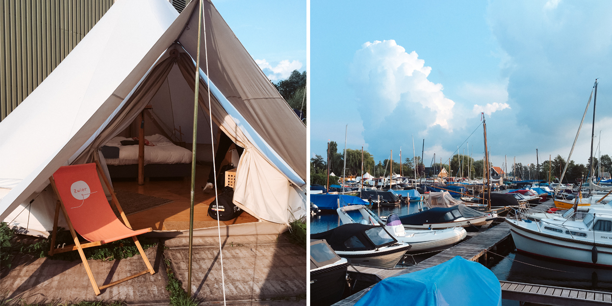 Zwier wordt ook wel de vrijhaven van de stad genoemd. Op 15 minuten rijden van Amsterdam bevind je je midden in de natuur. Met landweggetjes, een kleine haven en de Vinkeveense Plassen aan je voeten. Je slaapt in een van de grote bell-tenten, met een luxe boxspring, verwarmde dekens en een canvas dat opengeritst kan worden bij mooi weer. Overnachten kan ook in De Pakschuyt, een schip van 20 meter lang. En dan is er nog de eilandhut: een klein huisje op een privé-eiland, midden in de Vinkeveense Plassen.