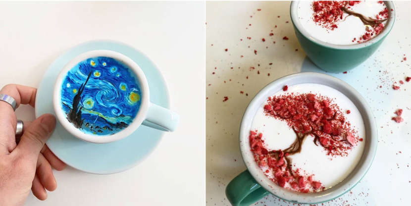 Blijft knap, mensen die allerlei figuurtjes in hun cappuccino kunnen maken. De Zuid-Koreaanse barista Kangbin Lee maakt er zelfs complete kunstwerken van.