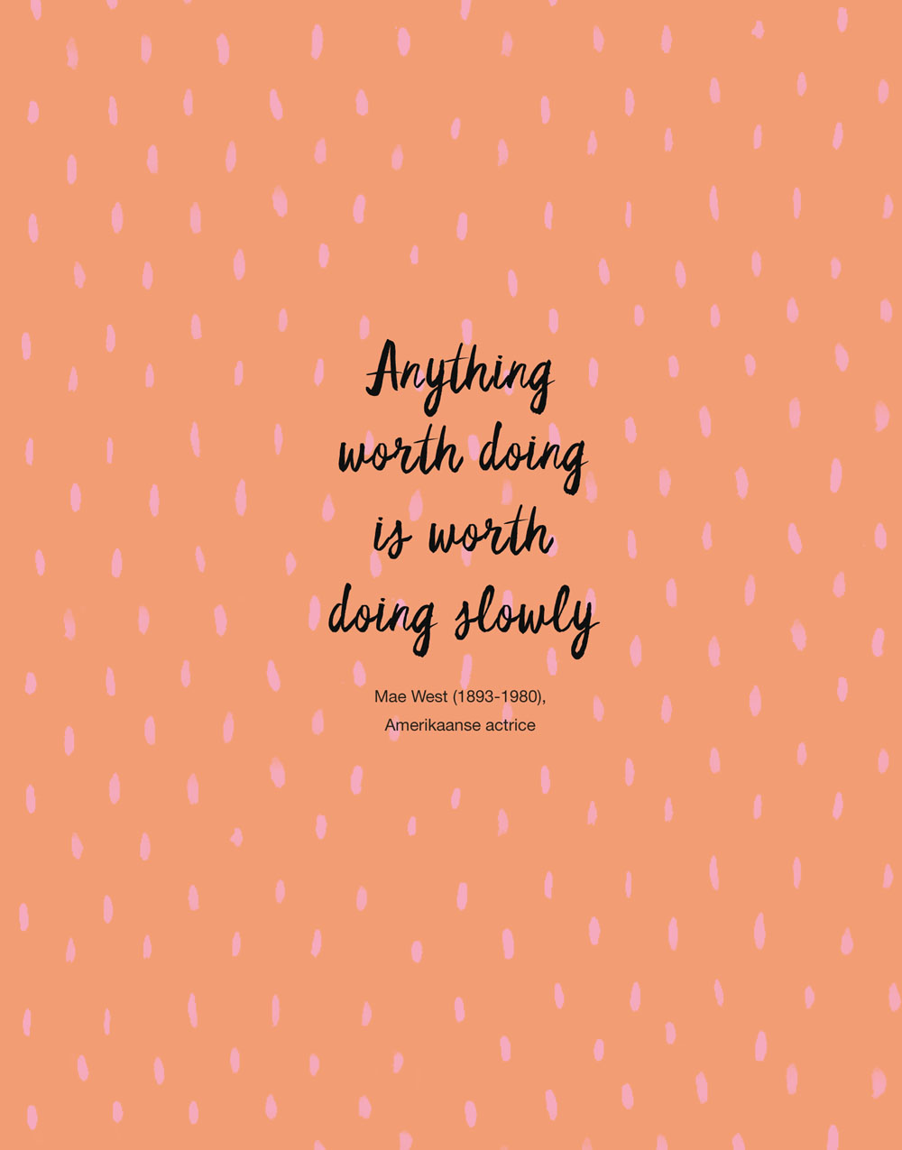 - Deze quote van Mae West staat in het Stilteboekje uit Het grote boek van minder.