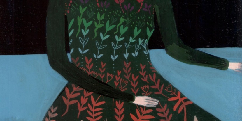 Melodie: “Voor deze illustratie heb ik me laten inspireren door portretten uit de renaissance. De details waarmee ze in die tijd kleding tekenden, blijven me boeien. Ik wilde iets maken waarbij de jurk net zo belangrijk is als het gezicht en schilderde er bloemen en blaadjes op die geleidelijk van kleur veranderen. Door de donkere achtergrond valt de kleding nog meer op. Ik had geen voorbeeld van een persoon in mijn hoofd, maar bedacht gewoon dat ik een sterke onafhankelijke vrouw wilde tekenen met een goede kledingsmaak. De illustraties is gemaakt met gouache. Daar werk ik nog maar kort mee, maar het bevalt goed.”