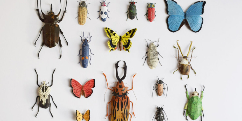 “Ik was grafisch ontwerper, maar tijdens mijn eerste zwangerschapsverlof in 2014 probeerde ik een keer iets in 3D te maken. Nog steeds werk ik vooral met papier, omdat ik daar het meest vertrouwd mee ben.” Kate woont op het platteland in Wales en is veel buiten. “Ik wandel over de landweggetjes hier of zoek in de tuin een plantje of beestje om zo gedetailleerd mogelijk te kunnen werken.”
