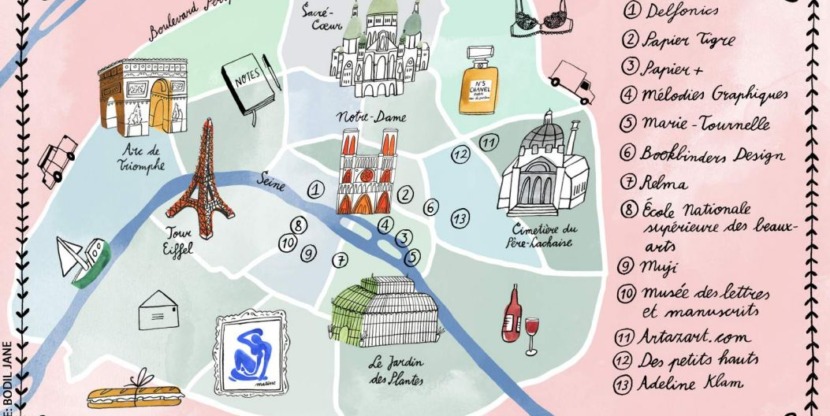 Voor Flow 7 maakte Bodil Jane iets moois om uit te printen en mee te nemen op je volgende trip naar Parijs, een plattegrond met alle papierwinkel-tips. Je kunt hem downloaden in ons downloadkastje. Ook leuk om als kleine poster op te hangen.