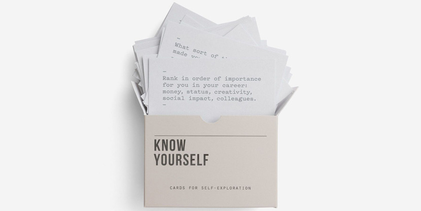- Know yourself – Cards for self-exploration, € 14,50, Theschooloflife.com.