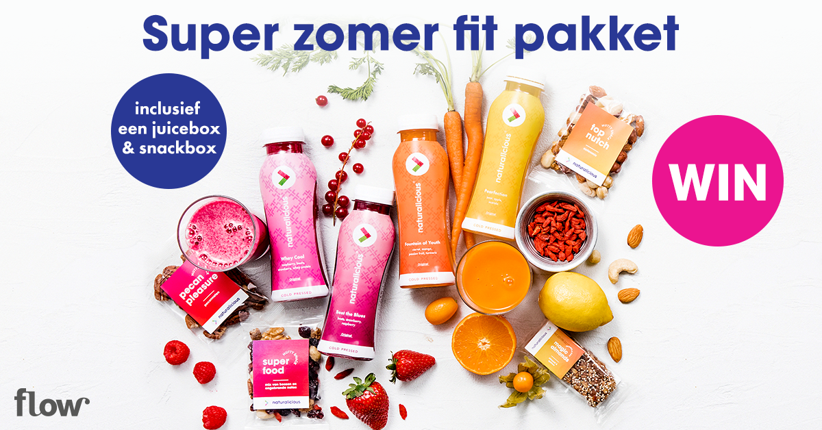 De winactie is een 1 x juicebox en 1 x snack box. In elk sapje zit een halve kilo groente en fruit van eigen oogst in heerlijke smaakcombinaties. Flow mag er drie weggeven. Wil jij kans maken? Vul dan het onderstaande winformulier. De winnaars krijgen over twee weken een bericht.