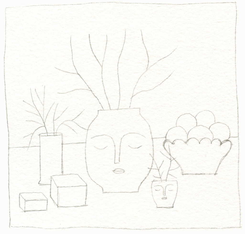 Ik gebruik een lichtbak om de compositie met een lichte potloodlijn over te brengen op aquarelpapier: