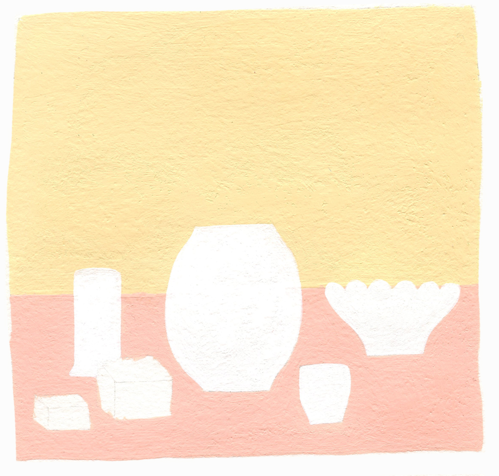 Daarna schilder ik de achtergrondkleuren een beetje grof rond de objecten.