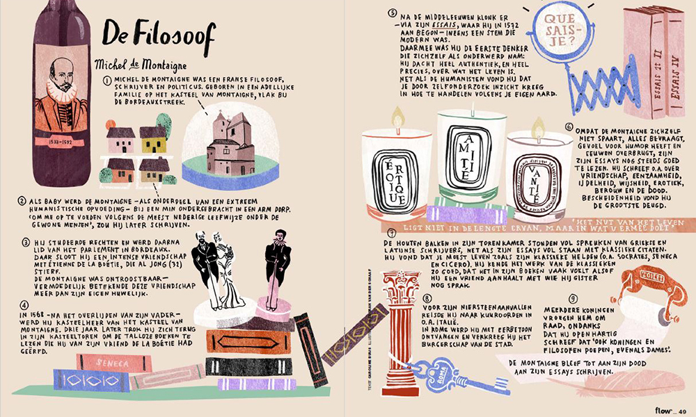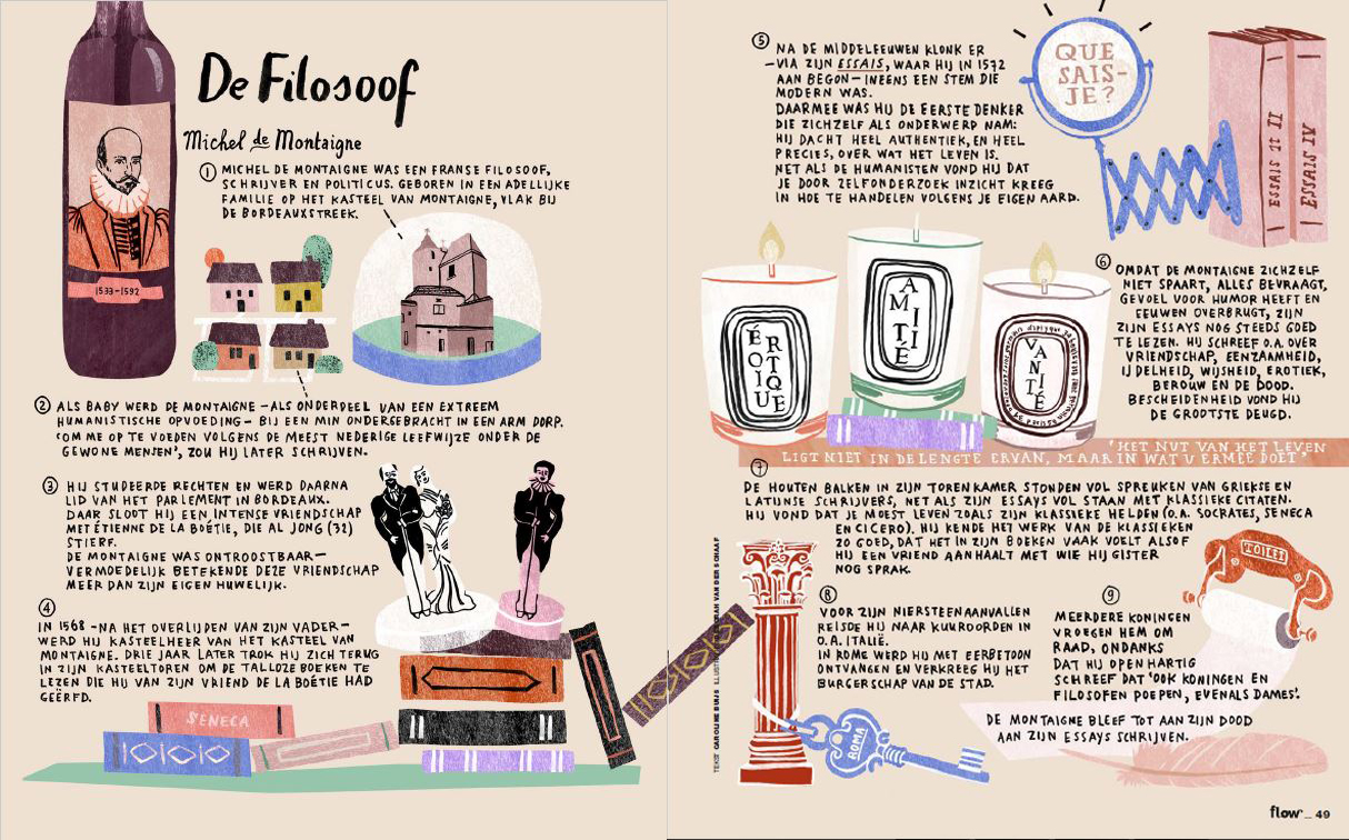 In ieder nummer bespreken we de filosofie van een grote denker, aan de hand van een aantal illustraties. Deze keer is dat Michel de Montaigne (1533-1592).