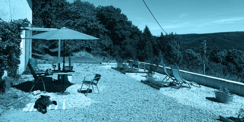 In de Eifel sta ik in contact met wat je vast kunt pakken, met wat er is. Afgelopen zomer timmerde ik bakken voor op mijn erf en zette daar planten in. Ik genoot van de vlinders en bijen die, uit het niets, meteen neerdaalden op het groen. In de bossen, waar het mos oplichtte in de zon, kwam ik niemand tegen. Als ik eens op een terras zat, hoefde ik niet te vechten om een stoel of om aandacht van de bediening. Er komen wel toeristen, maar de meeste vakantiegangers willen goede koffie en badkamers van na 2015, en die heb je hier niet zo veel.