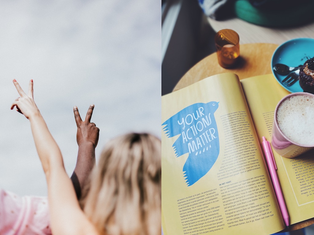 Misschien schrijf jij liever een kritische brief naar een krant, start je een handtekeningenactie of support je een activistische organisatie graag financieel. Activisme is óók je mond opentrekken over een onderwerp tijdens de lunch met collega’s. Het zijn de boeken die je leest en de podcasts die je luistert. Het gaat erom dat je gehoord wordt en dat kan ook als je niet met een protestbord op de Dam staat.