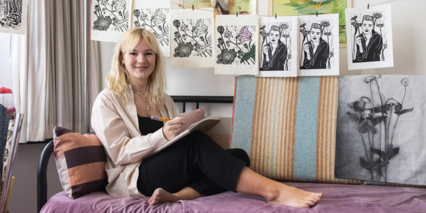 “Al van jongs af aan heb ik een grote liefde voor de natuur, vandaar dat ik biologie ben gaan studeren in Leiden. En vandaar ook dat ik in mijn vrije tijd stillevens maak met opgezette vlinders en linosneden van bloemen en planten. Dat doe ik in de oude kamer van mijn broer, die mijn moeder en ik veranderden in een atelier voor ons samen.