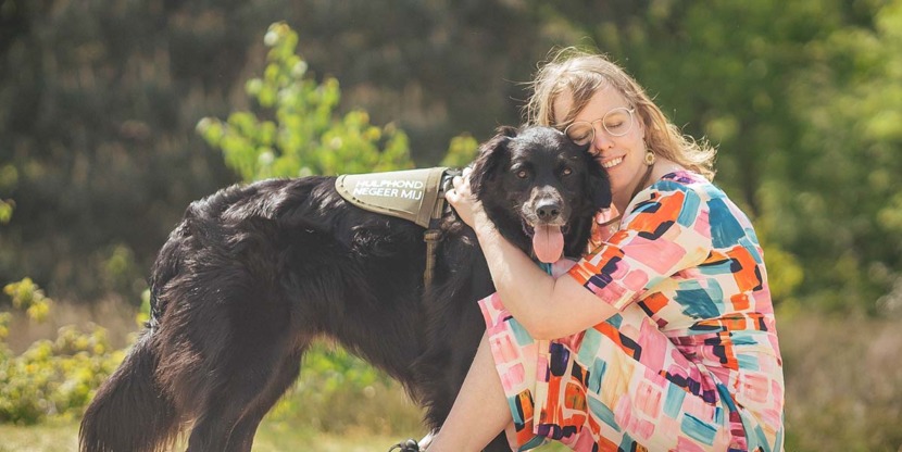 “Al jong kampte ik met psychische klachten, waaronder een posttraumatische stressstoornis. De therapieën die ik volgde, hielpen om alles beter te begrijpen, maar niet om verbinding met het leven te voelen. Ik wilde nog steeds niet hier zijn. Toen ik iets las over hulphonden, voelde dat als laatste hoop en ik besloot ervoor te gaan. Het heeft mijn leven gered. Ik moest verantwoordelijkheid nemen voor een pup, dat gaf me weer richting. En het belangrijkste: ik kon me veilig gaan voelen in een wereld die altijd onveilig voor me was geweest.”