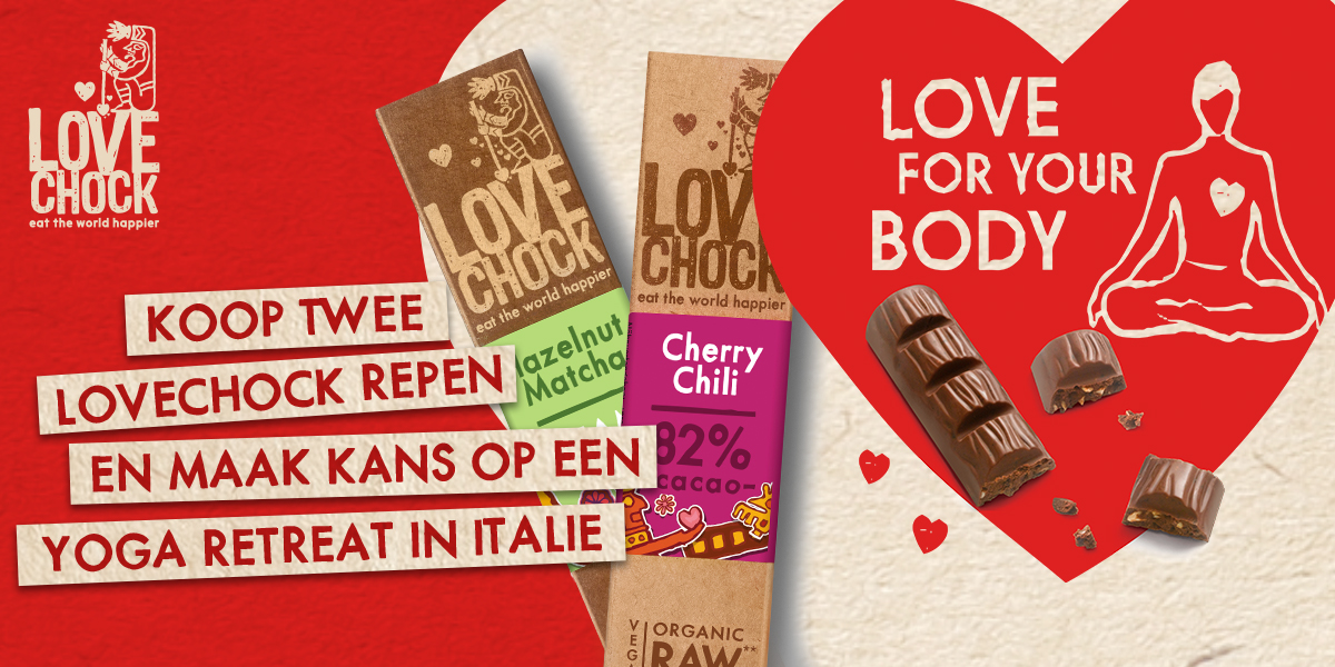In een maand waarin alles om liefde voor elkaar lijkt te draaien, is het ook belangrijk om lief voor jezelf te zijn, vindt Lovechock, dat je misschien kent van de rauwe chocoladerepen met zorgvuldig geselecteerde ingrediënten, in de mooie duurzame verpakking. Ze lanceren daarom de Love for your Body-campagne. Je maakt daarbij kans op een all-inclusive yoga retreat naar Italië.