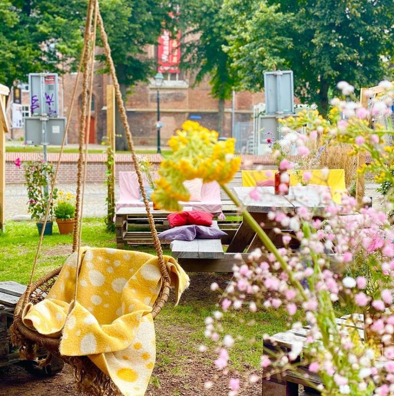Dicht bij de mooie boekwinkel Waanders in de Broeren, waar we al eens over schreven, zit Gillende Keukenmeiden in een oud Zwols pand. Als je van huisgemaakt lekkers houdt, ben je hier op de goede plek. Op de kaart staan allerlei lokale en biologische gerechten die je tot 17:00 kunt komen eten. Wanneer het droog is, kun je buiten zitten onder de bomen aan de picknicktafels en anders hebben ze binnen nog tafels. Het is bij Gillende Keukenmeiden vooral heel kleurrijk en het staat er vol met bloemen.