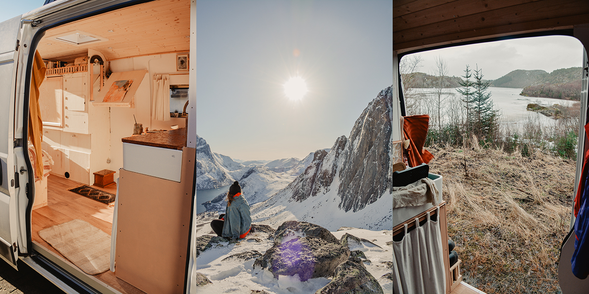 “Ik was al eens eerder in Noorwegen geweest, maar had nog niet rondgetrokken in dit prachtige land en wilde het graag aan Harri laten zien. We houden wel van extreme landschappen dus vertrokken in de winter richting Noorwegen, zodat we goed konden kijken of het echt goed ging met het busje en we daarnaast konden genieten van de overweldigende natuur.