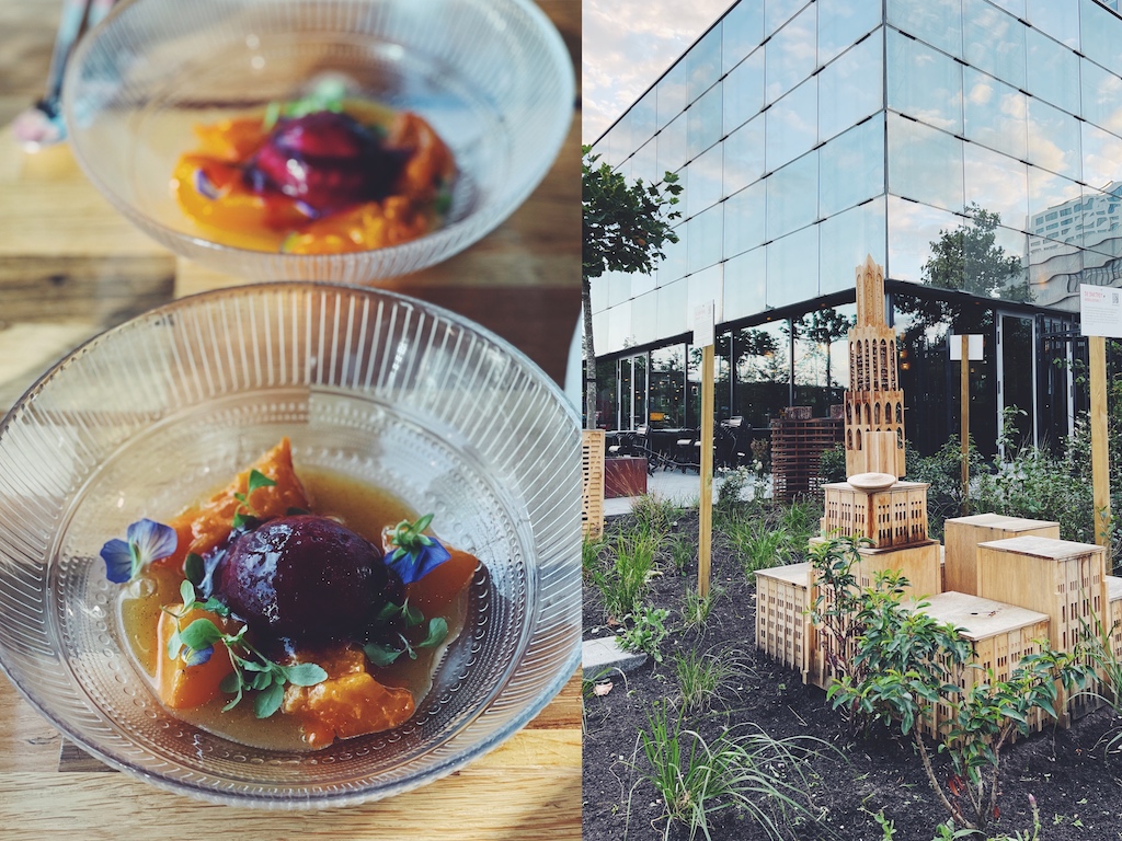 Het personeel is vriendelijk en behulpzaam bij dieetwensen, de sfeer in het restaurant is gezellig en kalm en als bonus staat er buiten het restaurant een bijenhotel (in de vorm van karakteristieke Utrechtse gebouwen) waar je na het eten nog een kijkje kunt nemen. Dit is de perfecte plek dus voor mensen die én van lekker eten houden én die duurzamere keuzes willen maken.