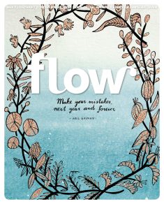 “Deze cover is zo fijn eenvoudig en rustig. Geen poespas, geen geschreeuw, maar wel een prachtig kleurverloop, koperkleurige glitter op de blaadjes en bloemen, en een met de hand geschreven quote. Daar staat Flow voor mij voor: liefde voor detail en oog hebben voor kleine dingen die je dag mooier maken.”