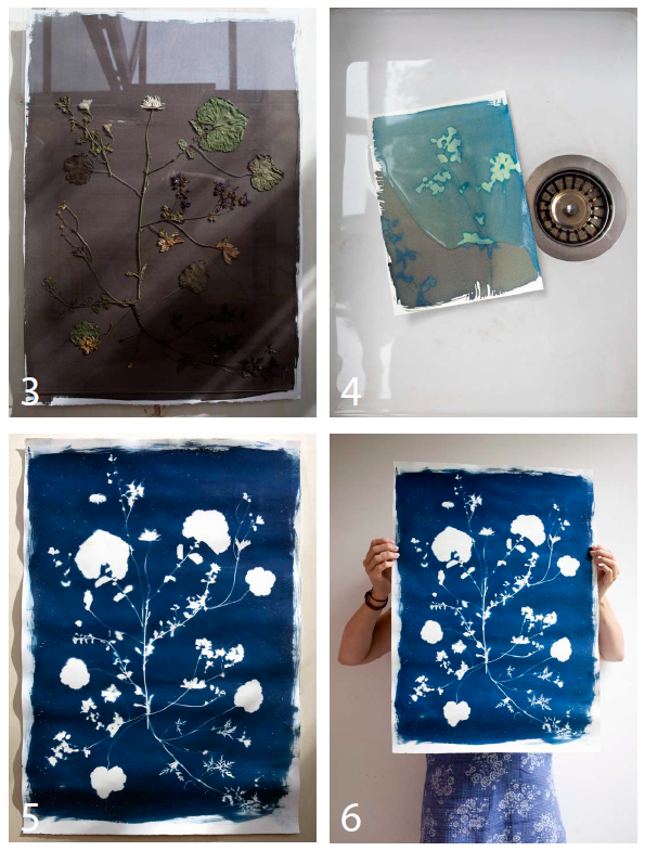 - Een plek waar de zon schijnt: het liefst op een droge, zonnige dag buiten. Dan doet het uv-gevoelige papier z’n werk en krijg je een mooie donkerblauwe ‘afdruk’.