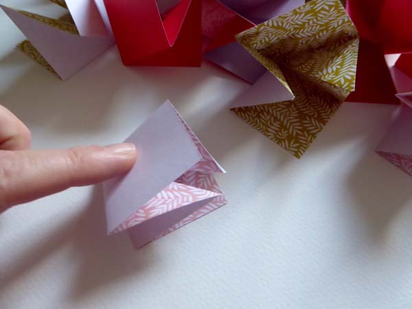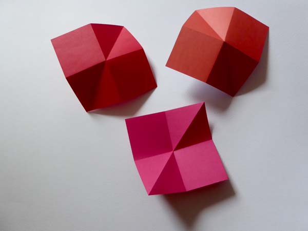 Vouw al je vierkantjes in deze frog folds. Hieronder zie je er drie.