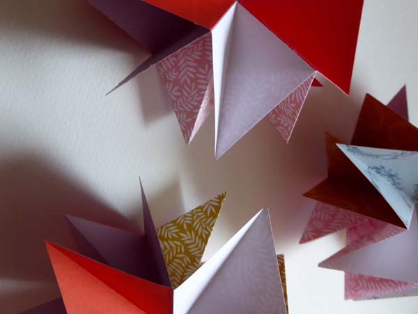 - Maak een hele rits kerststerren en hang ze bij elkaar.