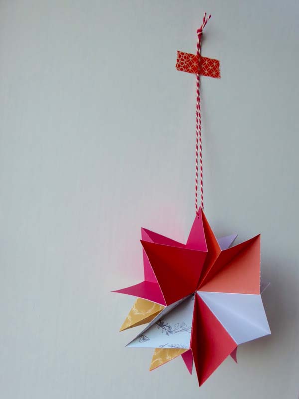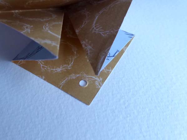 Gebruik een perforator om een gat te maken in het eerste en laatste vierkantje, en haal er een touwtje of lintje doorheen. Nu ben je klaar met het vouwen van je ster.