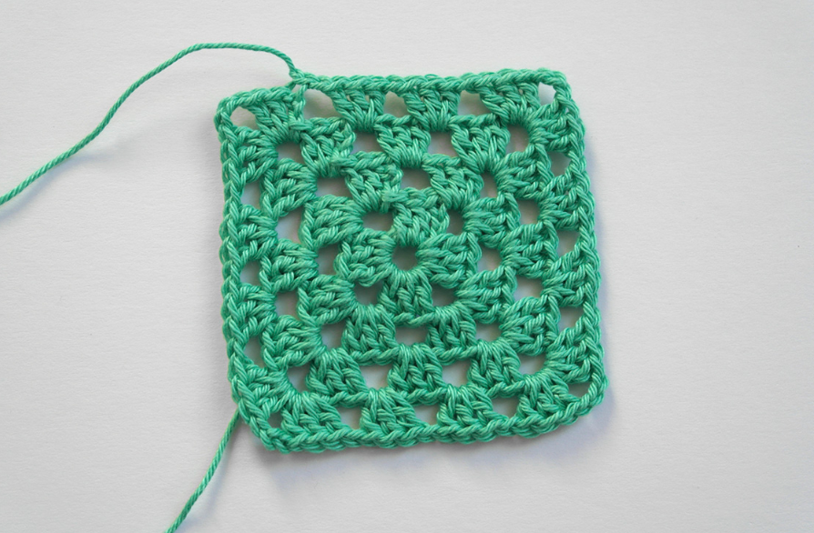 Stap 13: Is de granny square groot genoeg? Hecht dan af en werk losse draden weg.
