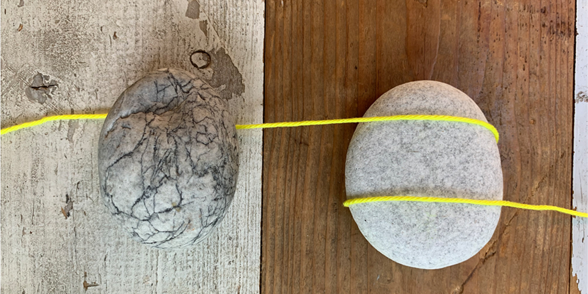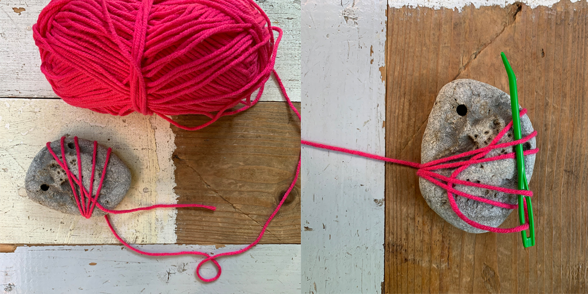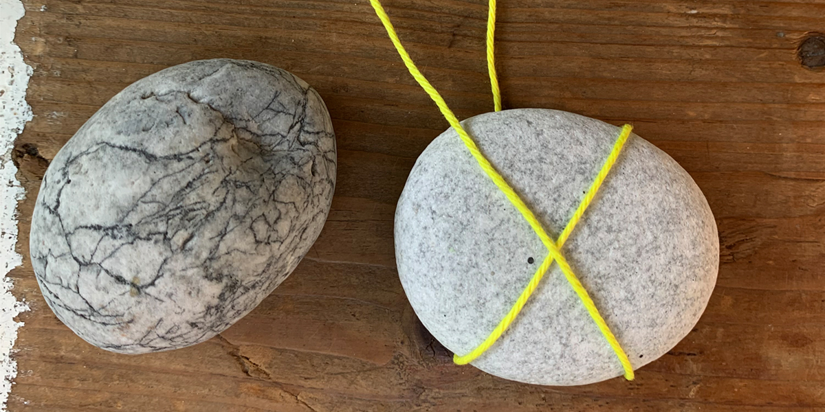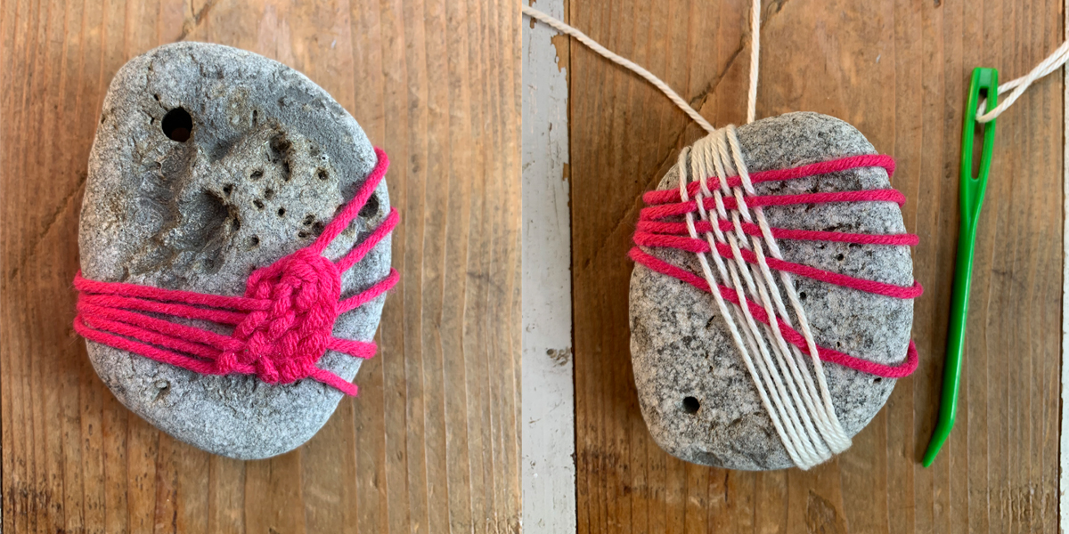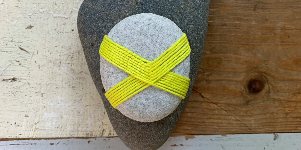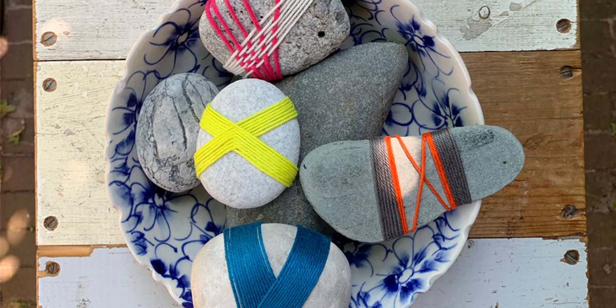 In een Japanse tuin staat water voor leven, groen voor de natuur en een steen voor rust. Misschien dat daarom steenweven zo rustgevend is. Waar in Japan de stenen vaak worden ingepakt in – kunstig geweven – riet, krijgen de stenen in deze DIY een jasje van wol of katoen.