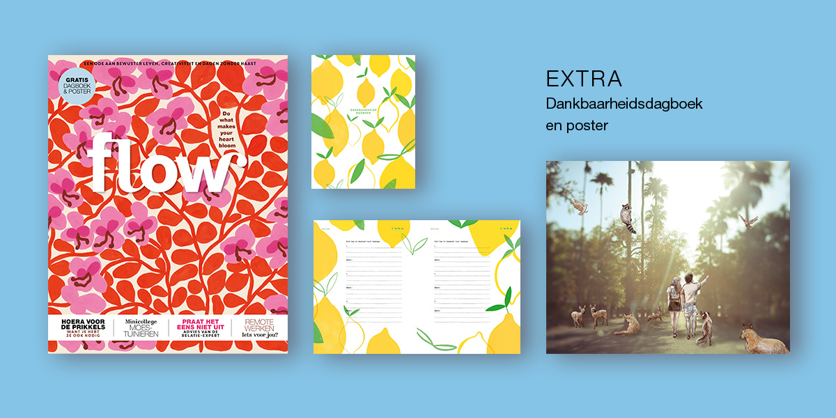 Flow 4 ligt in de winkel. Een nummer vol levensverhalen en ervaringen. Extra bij dit nummer: een dankbaarheidsdagboek en een poster.